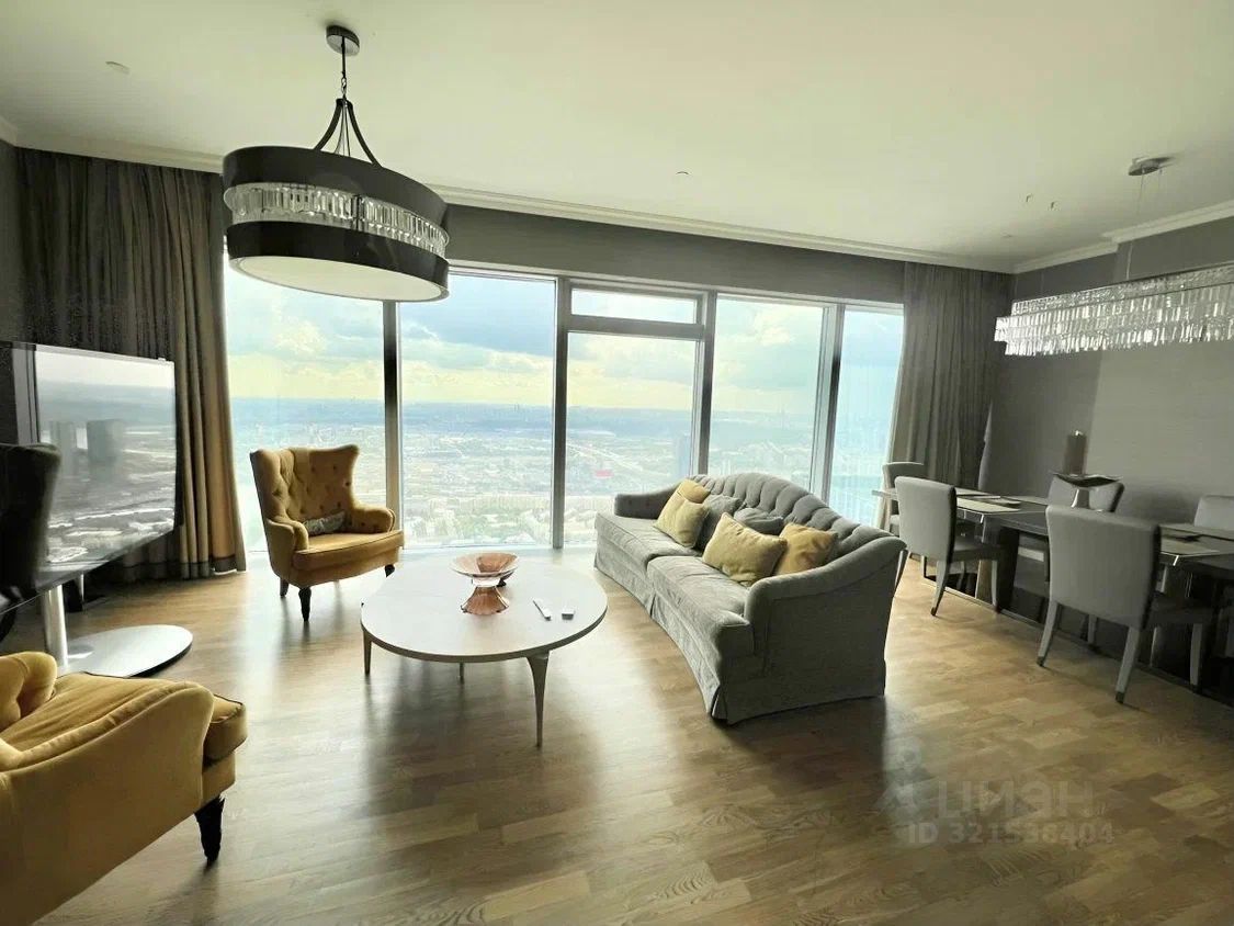 Сдаётся в аренду просторная и светлая двухкомнатная квартира в престижных апартаментах на Пресненской набережной. Общая площадь — 116 кв. м, квартира расположена на 53 этаже современного монолитного дома, построенного в 2010 году. Высокие потолки (3 м) и панорамные окна с видом на улицу и двор создают ощущение простора и света. До метро "Деловой центр" всего 2 минуты пешком.