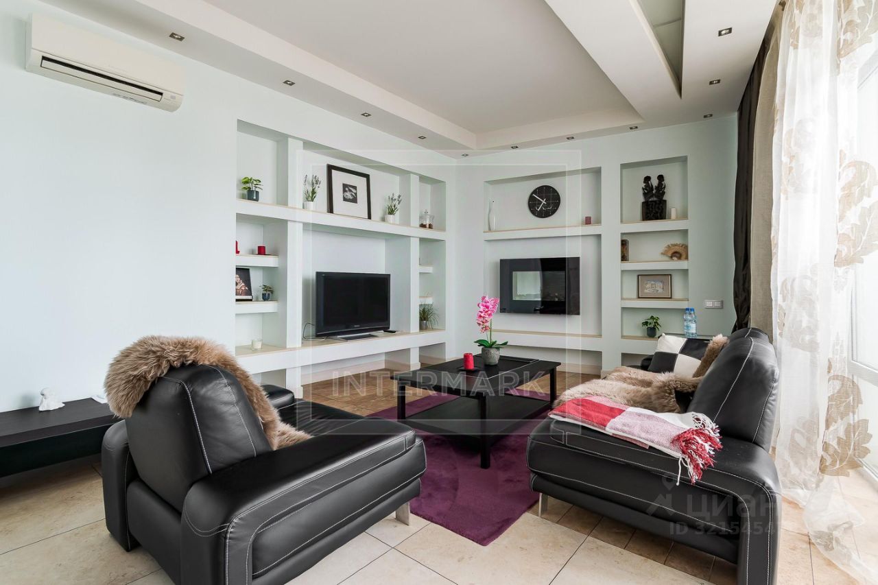ID 43265. Восхитительная 3-комнатная квартира в элитном жилом комплексе. Квартира предлагается с современным ремонтом и дизайном по индивидуальному проекту, полностью оборудована бытовой техникой от ведущих мировых производителей. Кондиционеры во всех комнатах. Функциональная планировка: общая площадь 135 кв. м, гостиная-кухня, спальни: 2, ванные комнаты: 1,5, гардеробная комната, застекленная лоджия, холл. Окна выходят на 2 стороны, высота потолков 3 м. Огороженная охраняемая территория, консьерж. Подземный паркинг, есть 1 машино-место . Дом расположен в зеленом тихом районе, рядом метро, школы, детский сад, торговые центры, кафе и магазины. Можно с детьми. Можно с животными.