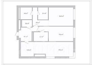 Планировка включает в себя кухню-гостиную, две спальни, три с/у, гардеробную. Виды из окон на улицу Льва Толстого и ул. Зубовская.