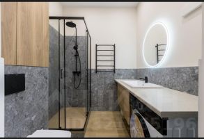 санузел совмещеный - Отделка премиум-класса. Тропический душ, гигиенический душ, стильная раковина. Стиральная машина с функцией сушки — ваша одежда всегда будет готова к выходу.