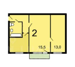 Функциональная планировка: изолированная спальня 13 м² и большая проходная комната 15,5 м² с выходом на балкон. Кухня 6 м² оборудована мебелью и бытовой техникой. Совмещённый санузел с большой полноценной ванной.