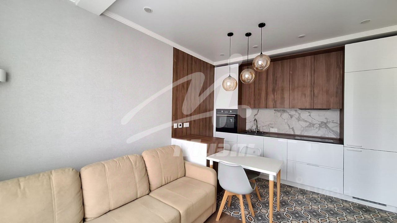 Удобная планировка квартиры: кухня-гостиная, спальня, большая гардеробная, просторный с/узел.