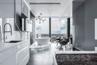 Панорамное остекление открывает захватывающие виды на столицу, наполняя пространство естественным светом и энергией.