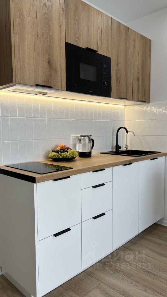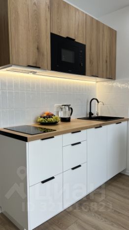 -Полностью оборудованная кухня: холодильник, микроволновая печь, индукционная поверхность.
