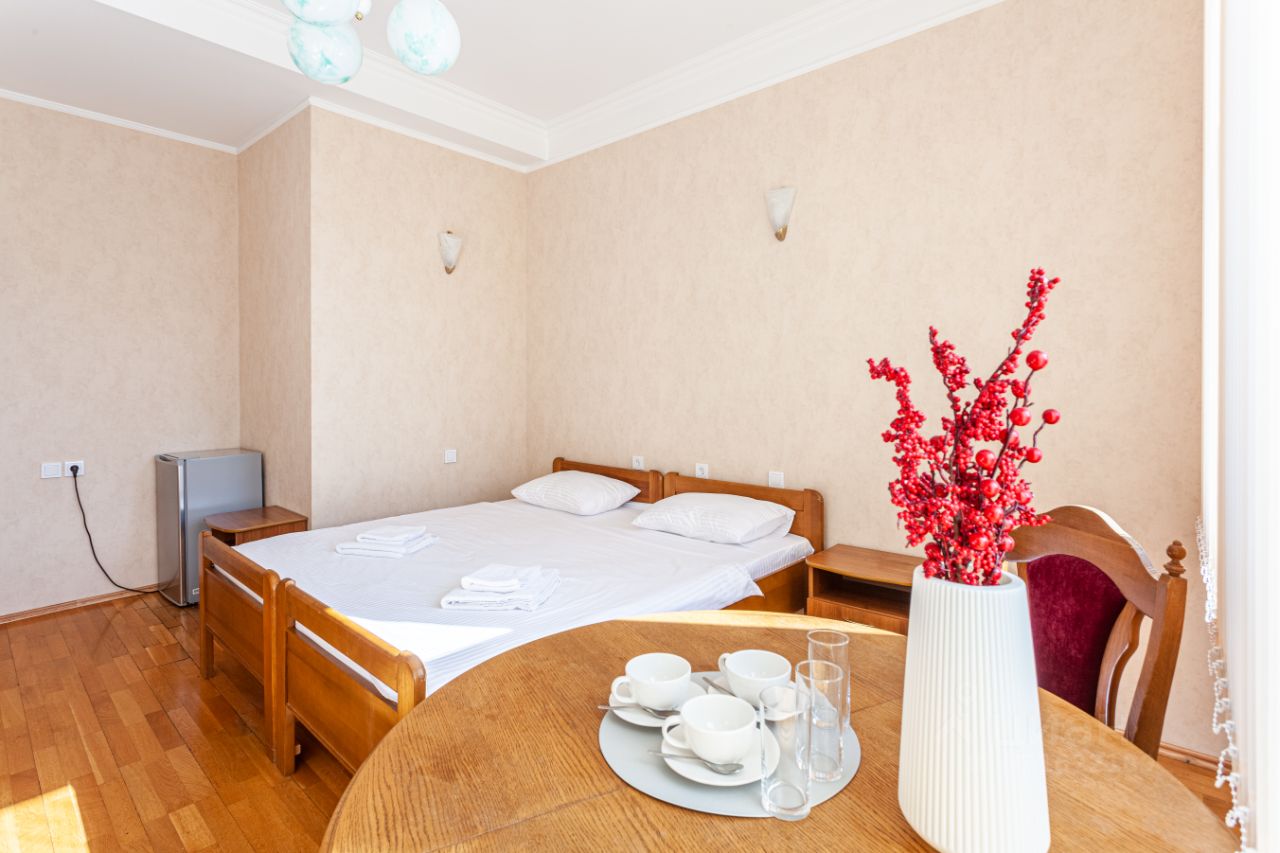 Современный интерьер номера создает атмосферу уюта и комфорта. Продуманная планировка и качественные материалы отделки делают пребывание максимально приятным.