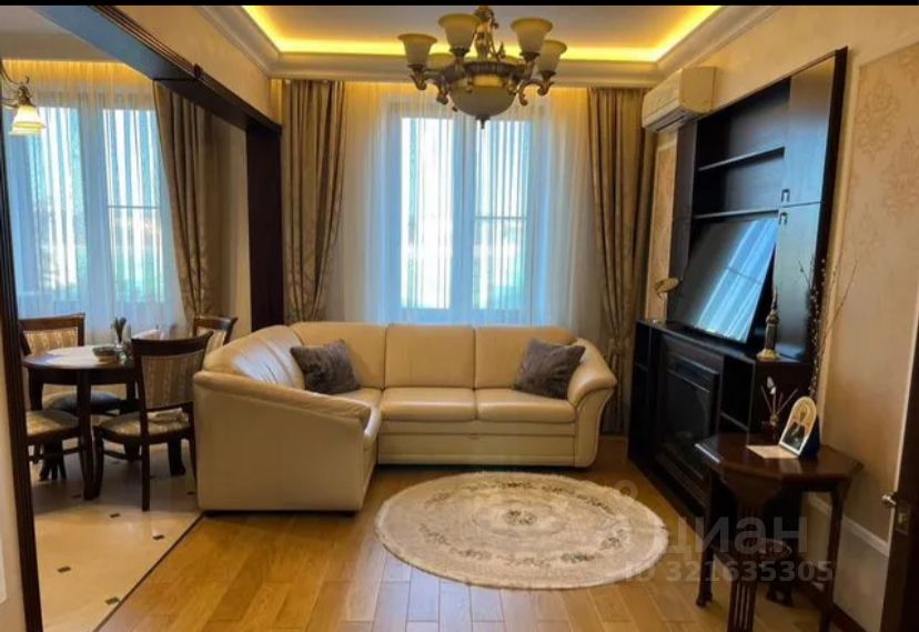 Дорогой евро ремонт, пол паркет, итальянская мебель. Большая двуспальная кровать с ортопедическим матрасом в спальне, большой угловой диван, гардеробная комната в спальне , итальянская кухня со встроенной техникой ,стиральная машина ,теплые полы в ванной, 2 кондиционера, микроволновка, электрокамин. Интернет Wi-Fi, спутниковое ТВ. Панорамный балкон.