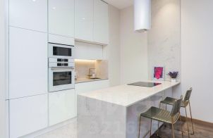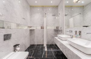 Апартаменты выполнены в дизайнерском стиле и полностью готовы к комфортному проживанию. В квартире есть вся необходимая мебель: обустроенная кухня и уютная жилая зона. Из техники — кондиционер, холодильник, посудомоечная и стиральная машины, а также телевизор. Санузел совмещенный, оборудован ванной и душевой кабиной.