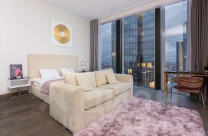 Предлагаем вашему вниманию уникальные апартаменты в аренду в самом сердце Москвы, в престижном районе Москва-Сити. Просторная студия площадью 55 кв. м расположена на 35 этаже современного монолитного здания 2020 года постройки. Высокие потолки (3.9 метра) и большие окна с видом во двор создают ощущение простора и света.