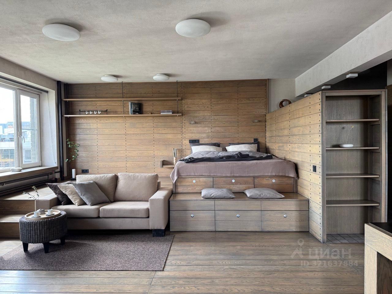 Лоджия и прихожая оборудована вместительными встроенными шкафами, под подиумом много выдвижных ящиков.