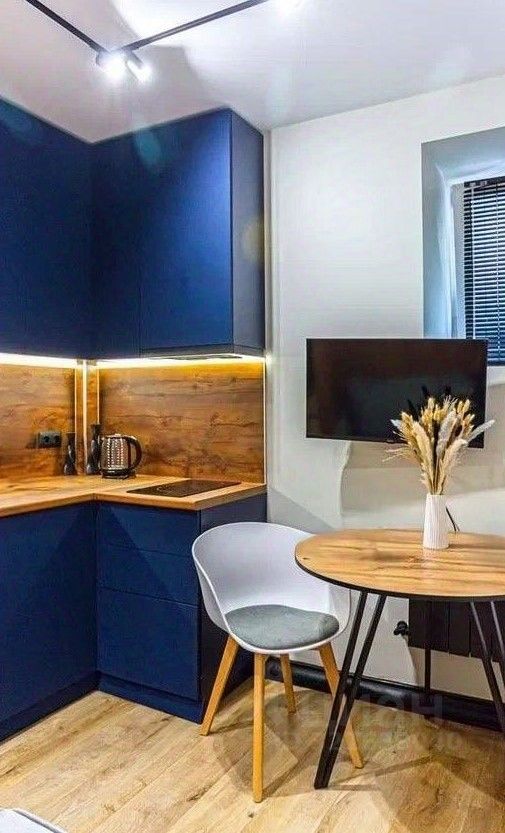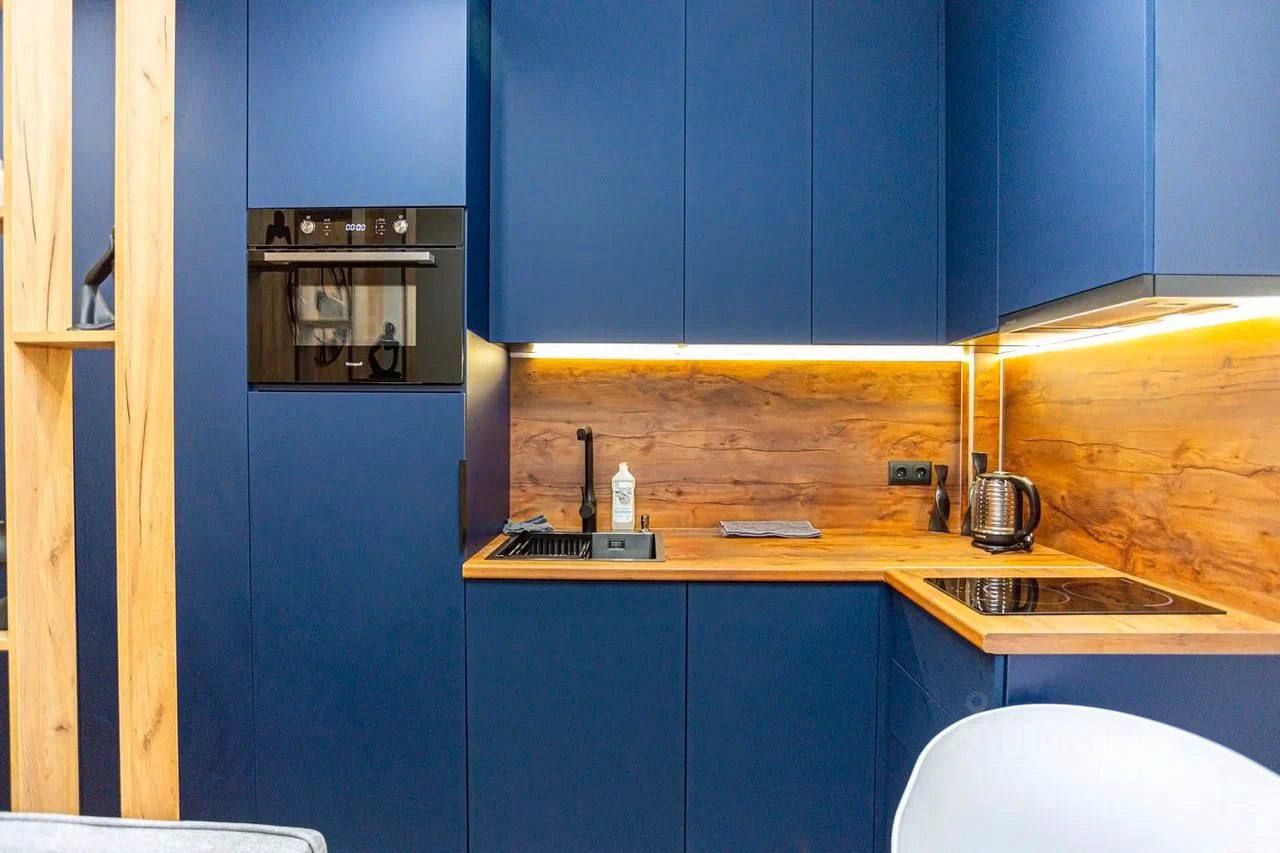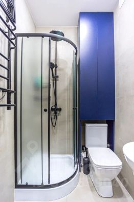 Здесь есть все необходимое для жизни: полностью оборудованная кухня с мебелью, плитой, холодильником, телевизором и микроволновой печью и зонами хранения. Санузел совмещенный, с душевой кабиной.