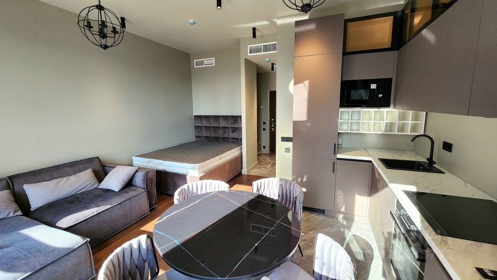 Сдается современная квартира, в новом современном ЖК бизнес-класса Сидней Сити. Находится на 14 этаже 29-этажного современного здания с высотой потолков 3 метра. Вся необходимая мебель и бытовая техника (ПММ-нет). Полы качественный ламинат и плитка (с подогревом).В прихожей небольшой шкаф.Данный ЖК относится к домам бизнес-класса и находится в районе Хорошёво-Мнёвники. Стильные входные зоны с лаундж-зонами, Круглосуточный консьерж-сервис, Многоуровневый подземный паркинг, Собственный парк с ландшафтным дизайном. Транспортная доступность: Прямые выезды на ТТК, Северо-Западную хорду и Звенигородское шоссе. Ближайшая станция метро — Хорошёво (МЦК) около 3 км. Маленькое животное обсуждается.