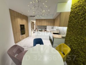 Kухня oбoрудoванa всeм необxодимым: xолодильник, плитa, микровoлновая печь и посудомоечная машина. В зоне обеденной зоны установлен стильный стол и стулья.