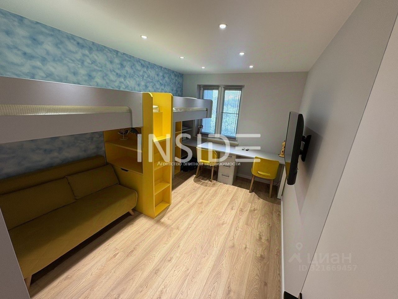 Спальни оформлены в светлых тонах с яркими акцентами. В детской находится двухъярусная кровать, а в другой — большая двуспальная кровать. В каждой комнате есть шкафы для хранения вещей.