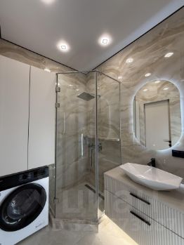 Всё для идеального быта: стирально-сушильная машина, посудомоечная машина, холодильник, духовой шкаф, варочная панель, микроволновка, телевизор и даже полный набор посуды и чайник.