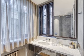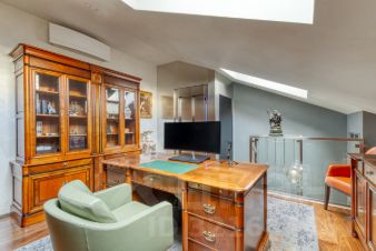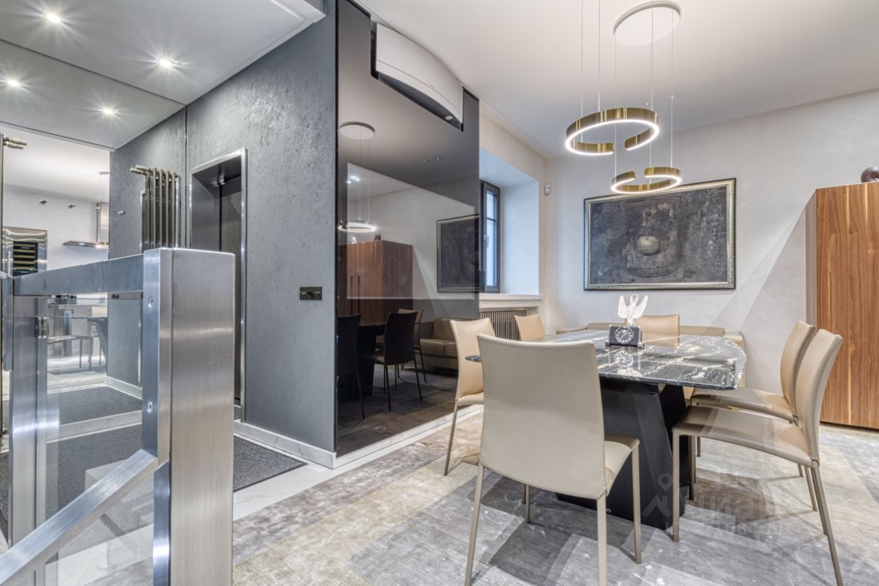 Предлагается в аренду Трёхэтажный таунхаус с подвалом в Романовом переулке в районе Арбат. Исторический особняк построен в 1899 году, была проведена полная реконструкция здания в 2015 году с заменой межэтажных перекрытий на железобетонные. Отделка фасада выполнена штукатуркой бежевого цвета, украшением служат русты, карнизы и оконные кронштейны лилового оттенка. Особняк разделен на 2 таунхауса с отделкой и мебелью, в каждом свой отдельный вход. В таунхаусе площадью 81 м² спланированы постирочная с гардеробом, кухня-столовая, спальня с ванной комнатой и кабинет, для удобства установлен лифт. Вся мебель итальянская под заказ. Американский холодильник Subzero с встроенным винным шкафом. Все окна с функцией размытия.