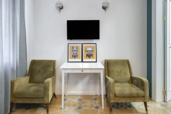 Постельное бельё, махровые полотенца, одноразовые тапочки, сушилка для белья, вся необходимая посуда и принадлежности, микроволновая печь, посудомоечная машинка, электрический чайник, утюг с гладильной доской, фен, и wi-fi.