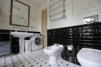 Ванная комната с окнами, отдельно в ванной комнате есть ванная и душевая, биде.