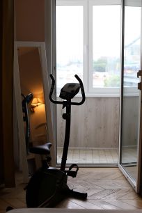 В квартире есть спортивный уголок (велотренажер, коврик для йоги, ролл).