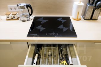 Кухонное пространство полностью оборудовано бытовой техникой и посудой(духовой шкаф,индукционная плита, микроволновая печь, посудомойка,холодильник)также Ваша кухня оборудованна фильтром с питьевой водой.