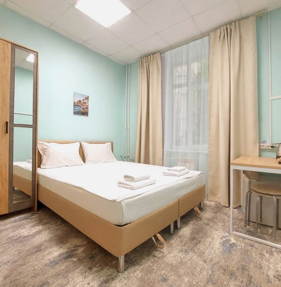 Отдельный номер с ремонтом площадью от 9,2 м2 до 10,3 м2. В номере: вешалка для верхней одежды, двуспальная кровать 160*200 с ортопедическим матрасом, стол, стулья, шкаф с вешалками для одежды, телевизор от 32 дюймов, холодильник, чайник, чайный набор. Санузел с душем, фен, туалетные принадлежности (шампунь и гель для душа, туалетная бумага, освежитель воздуха)