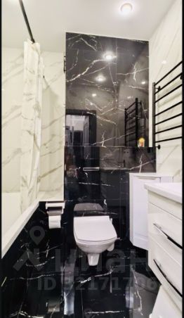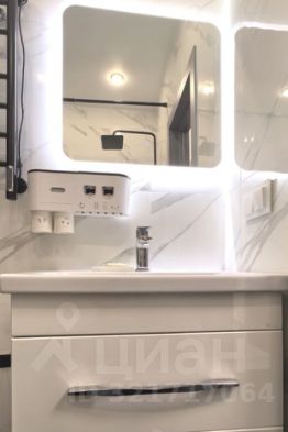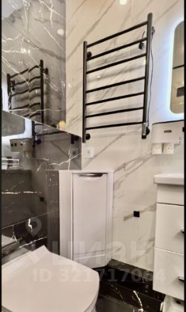 •Санузел совмещенный: большая ванна, угловой шкаф, настенное зеркало с подсветкой, тумба под раковину, унитаз с инсталляцией, полотенцесушитель.