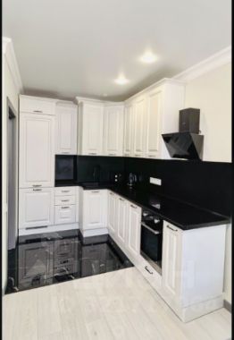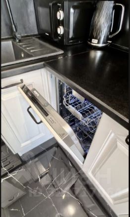 •Кухня-гостиная: встроенная кухонная мебель и качественная бытовая техника (посудомоечная машина, стиральная машина, встроенный холодильник, варочная панель, духовой шкаф, вытяжка, микроволновая печь, электрочайник). Гостиная зона: большой трехстворчатый шкаф для хранения, диван, столовая группа (стильный стол и два стула), большой телевизор.