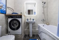 Ванная: стиральная машина, фен, зеркало с подсветкой, полотенца, одноразовые тапочки, зубная щетка/паста, средства гигиены.