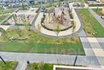 Внутренний двор оборудован детскими и спортивными площадками. Развитая инфраструктура района все рядом: магазины, ресторан, кафе, пункты доставки.