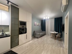 —В комнатах кондиционеры, вся техника встроенная: холодильник, микроволновая печь, посудомоечная машина, вытяжная система, духовой шкаф, варочная панель, телевизор, умное биде в сан. узле. Квартира полностью готова к заселению.