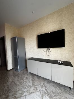 Квартира полностью оборудована всем необходимым для комфортного проживания. В наличии современная кухонная мебель и мебель в комнате. Из техники — кондиционер, холодильник, посудомоечная машина, телевизор и стиральная машина. Ванная комната оснащена душевой кабиной. Балкон добавляет пространство для отдыха или хранения вещей.