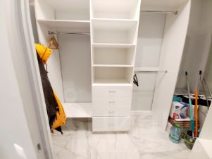 Ремонт выполнен с использованием высококачественных материалов - на стенах дорогая покраска, на полу - паркет и плитка под мрамор. В гардеробную и санузел установлены стильные двери скрытого монтажа.