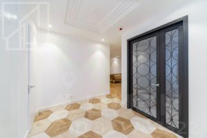 Планировка: уютная гостиная с эко-камином, современная полностью оборудованная кухня, две спальни, гардеробная комната, ванная комната с душевой кабиной и ванной, гостевой туалет, просторный холл и балкон из спальни.