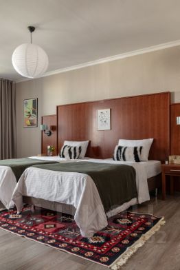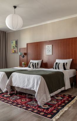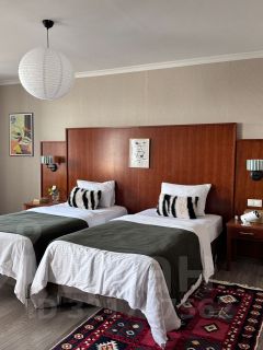 Две односпальные кровати 100200, которые объединяются в королевскую кровать 200200, сверху мы кладем топпер - ваш комфортный сон превыше всего. Сообщите за 1 день до заезда конфигурацию. Блэкаут-шторы для глубокого сна