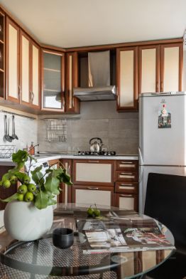Полностью оборудованная кухня - индукция, кастрюли, сковороды, тарелки, бокалы и всё, что нужно для готовки и несложной сервировки