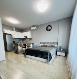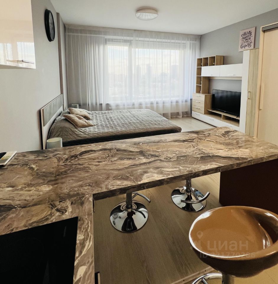 Сдается студия 30м. в ЖК Дискавери, 2021 года постройки. Евроремонт, вся бытовая техника, кондиционер, без балкона. Прекрасный панорамный вид.
