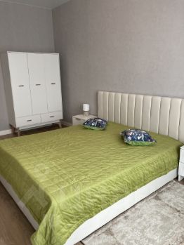 В квартире выполнен дизайнерский ремонт. Просторная кухня оснащена всей необходимой мебелью и техникой, включая холодильник и посудомоечную машину. В комнате также есть вся необходимая мебель для комфортного проживания.