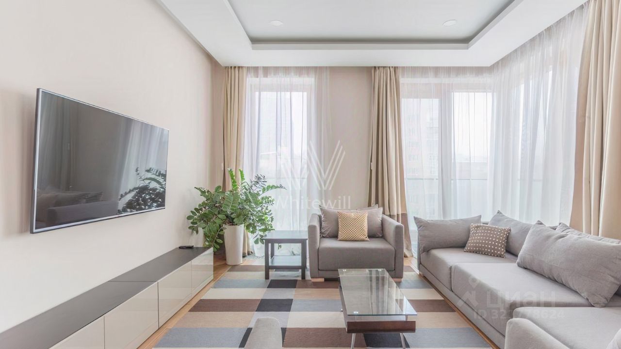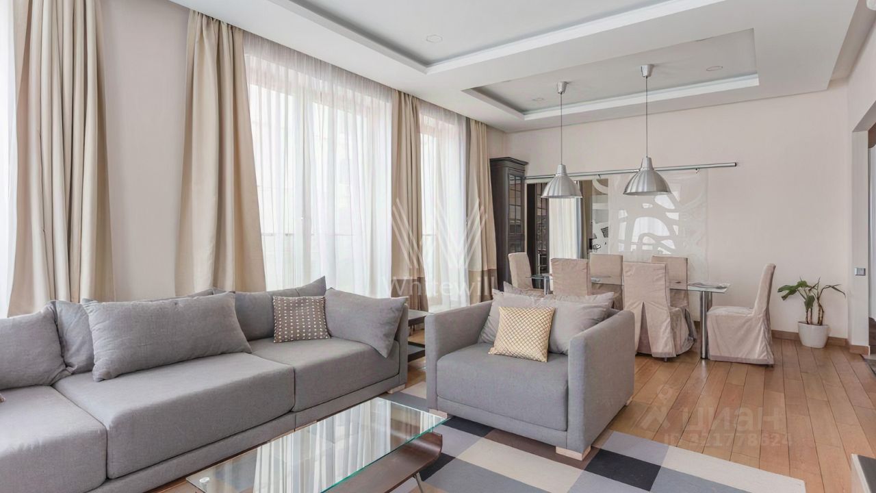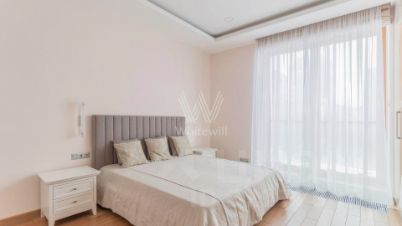 Бонус партнёрам 50%. Апартаменты с 3-мя спальнями общей площадью 170 м² в комплексе Smolensky De Luxe. Выполнена светлая дизайнерская отделка в современном стиле. На полу выложена доска из натурального дерева, ванные комнаты отделаны мозаикой. Благодаря панорамному остеклению и потолкам высотой 3,2 метра пространство наполнено светом.