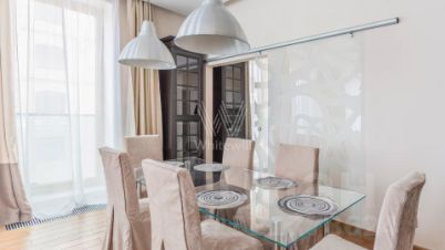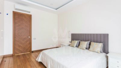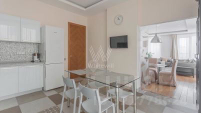 Планировка: просторная гостиная, кухня с выходом на балкон, три спальни, два совмещённых полноценных санузла, гардеробная, гостевой санузел с постирочной, балкон. Апартамент полностью укомплектован современной мебелью и бытовой техникой. Установлена система кондиционирования. Окна выходят на две стороны света с видом в тихий переулок и на город. В стоимость входит 1 машиноместо в подземном паркинге.