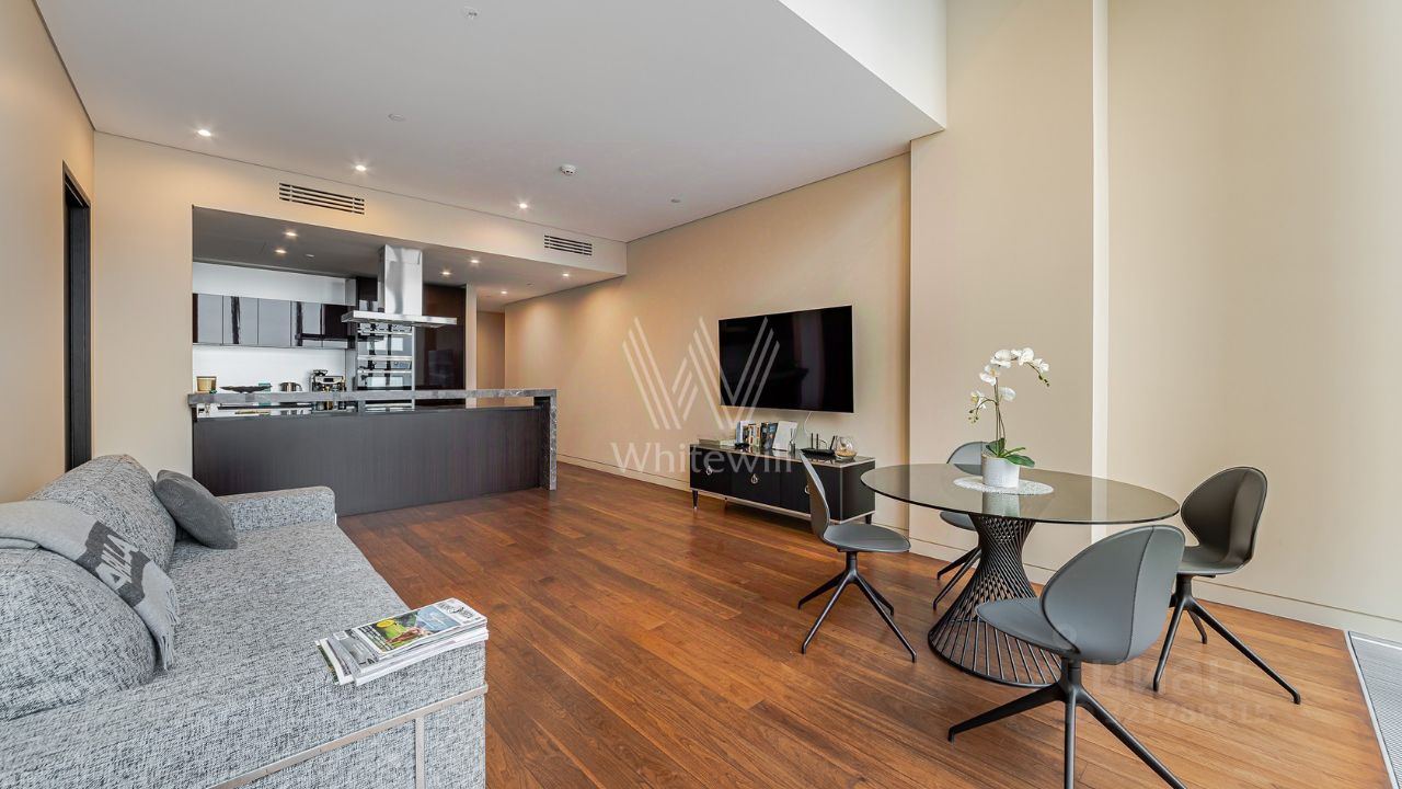 Спланирована кухня-гостиная с обеденной зоной, мастер-спальня с гардеробной и ванной комнатой, гостевой санузел, прихожая. Апартаменты полностью меблированы и оборудованы бытовой техникой. Предусмотрено машино-место в подземном паркинге.