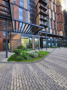Двор без заезда машин, проезд только на паркинг, охраняемая территория. На территории ЖК расположен Детский центр развития, рядом спортивный площадки (теннисные корты, футбольные поля) фитнесс центр, дом расположен на берегу реки в Сосновом бору с удобной транспортной доступность. Вскоре откроется станция метро "Живописная" ( 5 минут ходьбы) Рублево-Архангельской линии.
