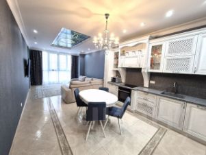 Кухня со встроенной техникой: Bosch, Siemens, Neff (индукционная варочная панель, духовой шкаф, посудомоечная машина, холодильник). сантехника фирмы Grohe, по всей квартире, кроме спален, напольная итальянская плитка Versacе (полы с подогревом), мебель на кухне и прихожая массив дуба, Румынский спальный гарнитур, кондиционер, высокоскоростной интернет WI-FI.