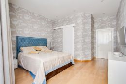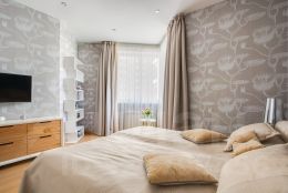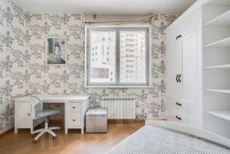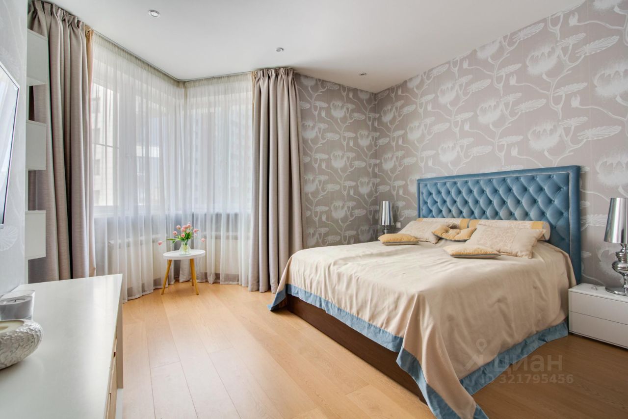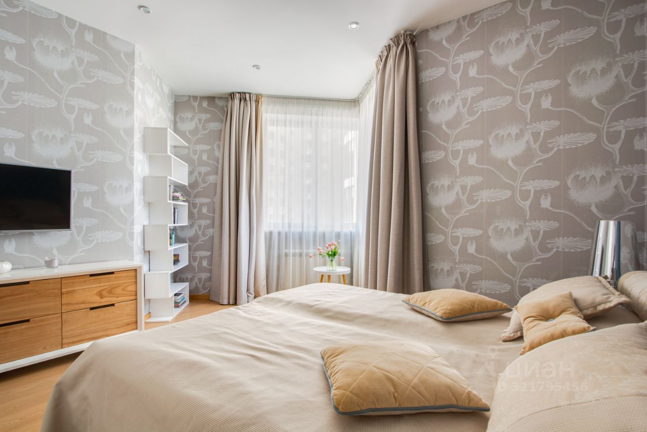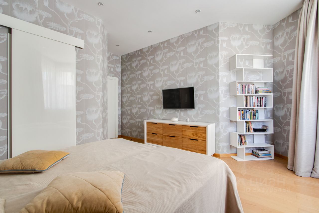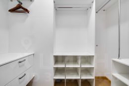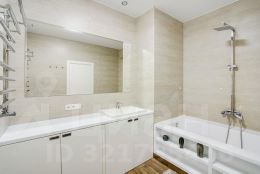 В квартире 2 изолированные спальни (одна - с гардеробной, другая - с рабочей зоной), просторная кухня-гостиная со встроенной техникой, включая посудомоечную машину, большая ванная комната. При входе в коридоре - вместительный шкаф во всю стену.