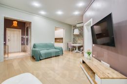 Высокие потолки (3 м). Тишина. Качественный дизайнерский ремонт (в действительности - красивее, чем на фото, обои - спокойные, гармоничные). Продуманная планировка.