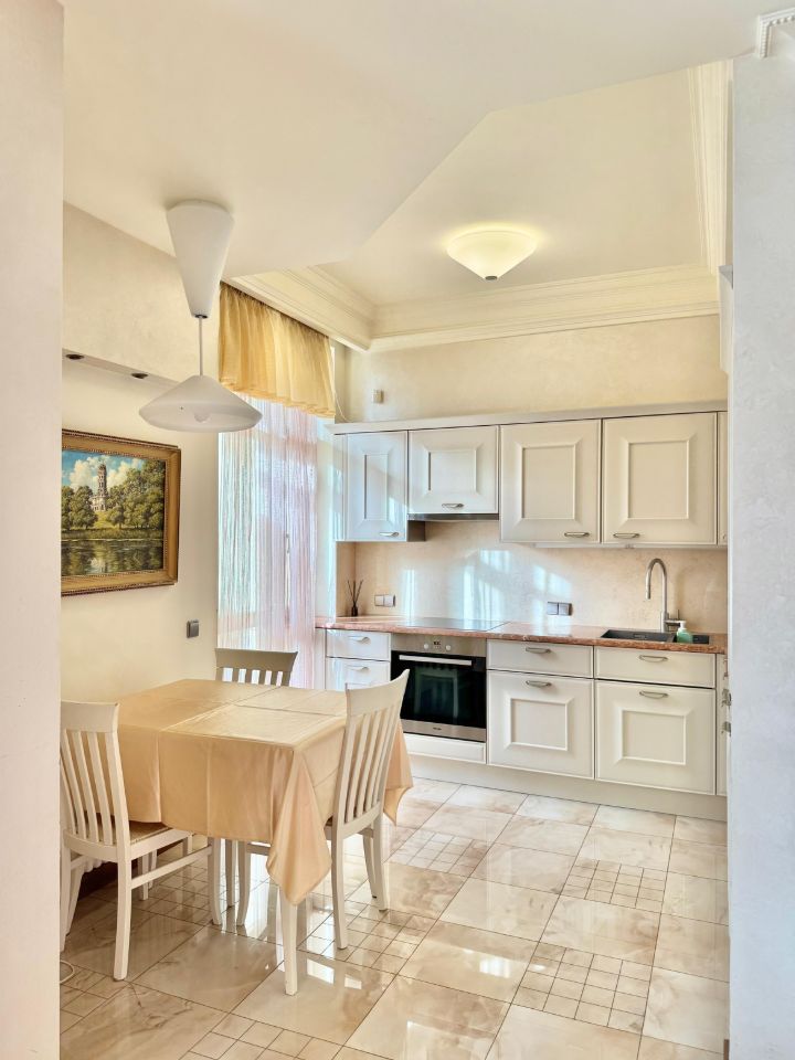 В наличии вся необходимая мебель — обустроенные комнаты и кухня, установлена техника: кондиционер, холодильник, посудомоечная и стиральная машины, телевизор.