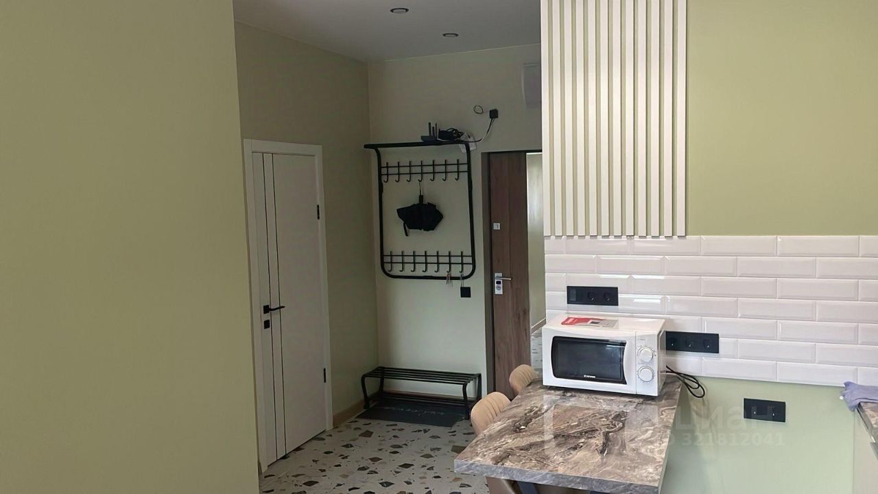 В квартире есть всё необходимое для комфортного проживания. На кухне и в комнате установлена современная мебель. Из техники — кондиционер, холодильник, посудомоечная машина, телевизор и стиральная машина. В совмещённом санузле установлена ванна. Дизайнерский ремонт подчеркивает уникальность интерьера и создаёт ощущение простора.