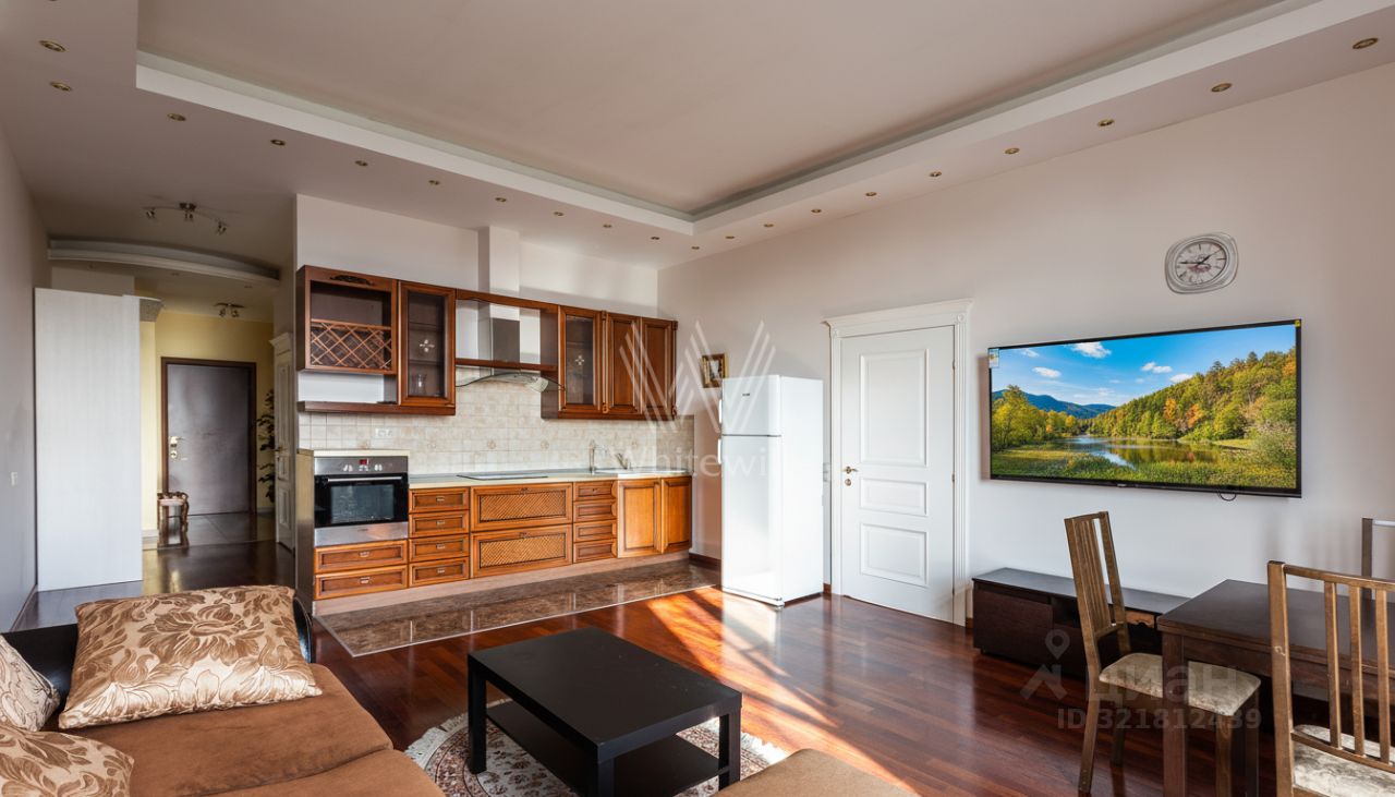 Квартира с одной спальней в комплексе премиум-класса "Золотые Ключи-2". Квартира общей площадью 76 м² расположена на 19-м этаже. Выполнена отделка в стиле современной классики в светлых тонах. Спланирована кухня-гостиная с обеденной зоной, мастер-спальня с ванной комнатой, гостевой санузел, прихожая. Квартира полностью меблирована и оборудована бытовой техникой. Большие окна наполняют пространство естественным светом и открывают вид на город.