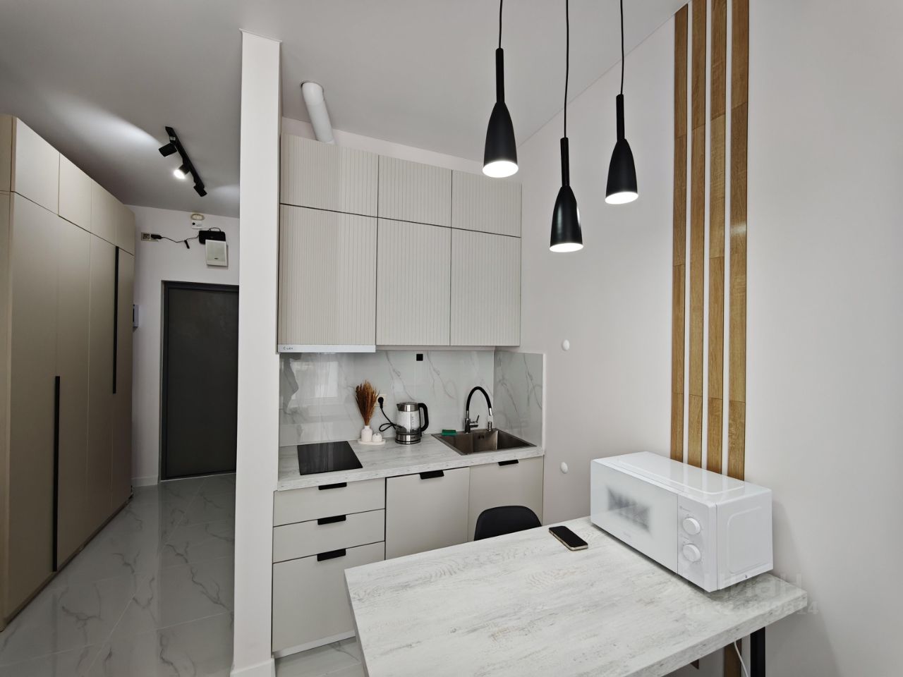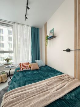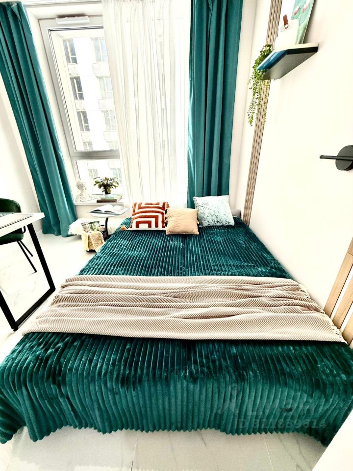 Общая площадь квартиры — 20 кв. м, жилая — 14 кв. м. Квартира расположена на 6 этаже 25-этажного дома с высотой потолков 3.2 метра.