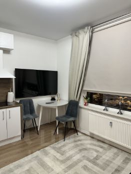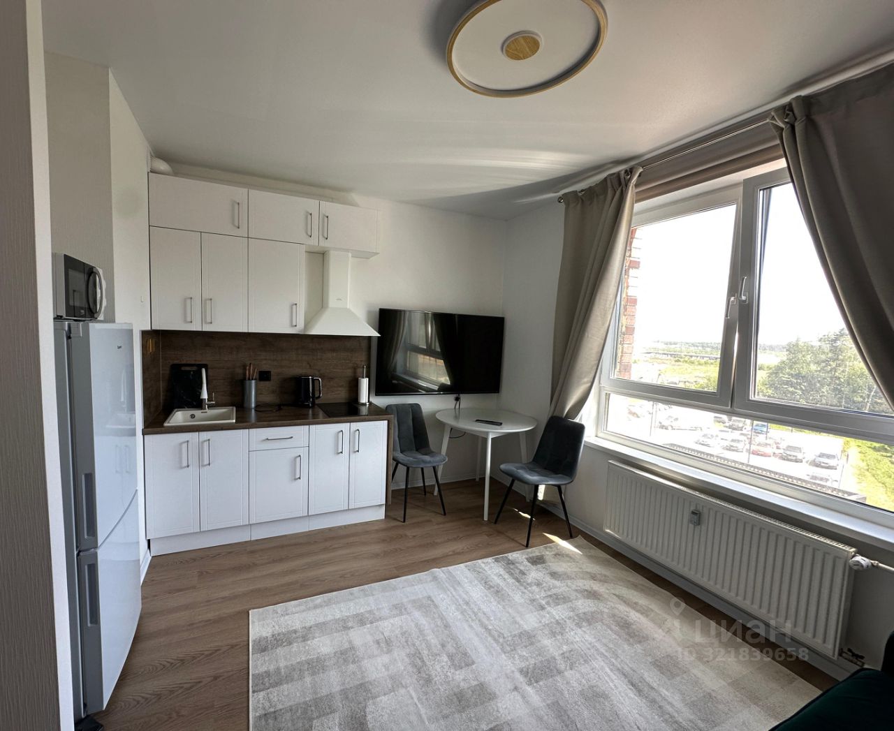 Обставлена мебелью и техникой для комфортного проживания: TV LG 60 дюймов со SMART TV, вместительный кухонный гарнитур, варочная панель на две конфорки, вытяжка, электрический чайник, микроволновка, холодильник, посуда, просторный шкаф для хранения вещей, раскладной диван-кровать, стиральная машинка, wi-fi и т.д.