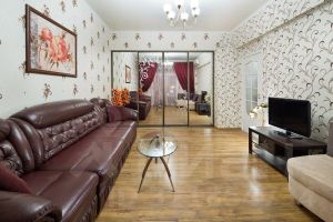 -Гостиная ( 1 раскладной диван, 1 раскладное кресло, ЖК телевизор, зеркальный шкаф-купе, журнальный столик.).