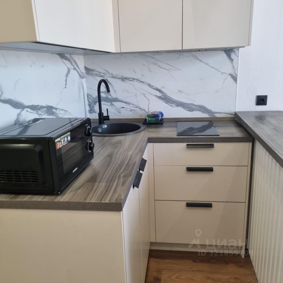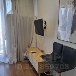 В апартаментах выполнен дизайнерский ремонт, который создает уютную и современную атмосферу. Здесь есть все необходимое для комфортного проживания: кондиционер, холодильник, телевизор и стиральная машина. Мебель в комнате и на кухне продумана до мелочей, что позволяет эффективно использовать пространство. Санузел совмещенный и оборудован душевой кабиной, что добавляет удобства.